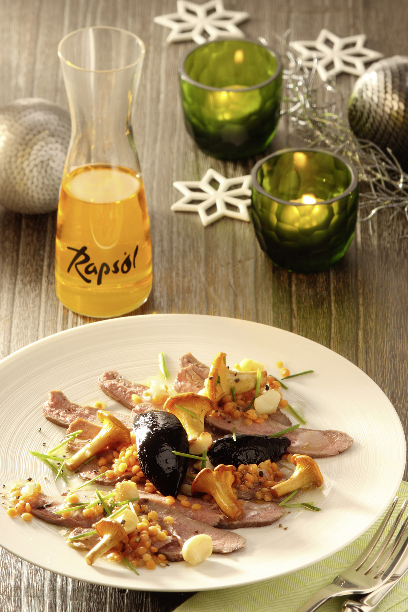 Rezeptidee Dezember 2016: Gänsebrust-Carpaccio mit Holundergelee und Linsensalat