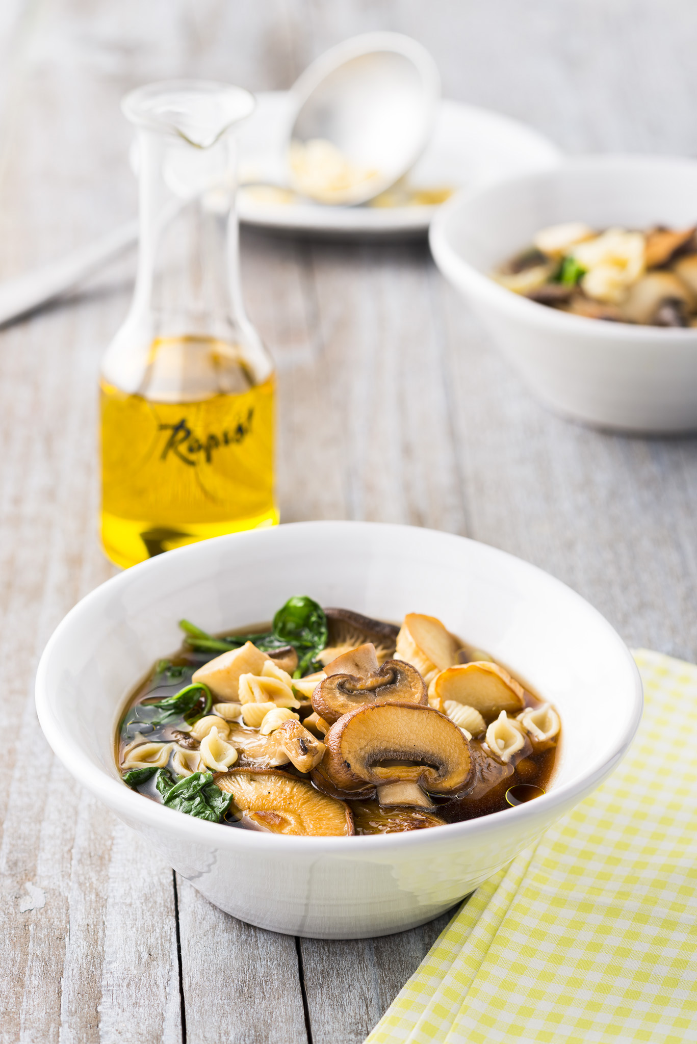 Rezeptidee Oktober 2022: Nudelsuppenbowl mit Spinat und Pilzen
