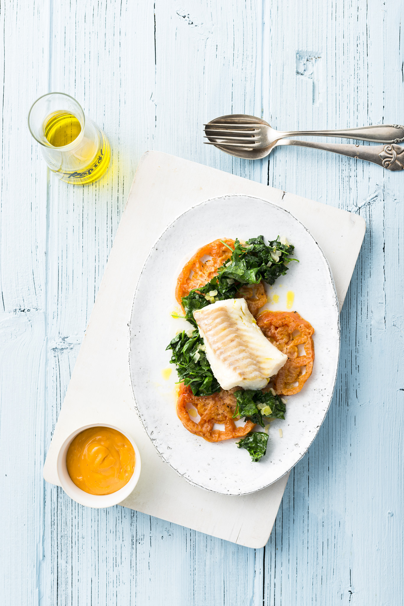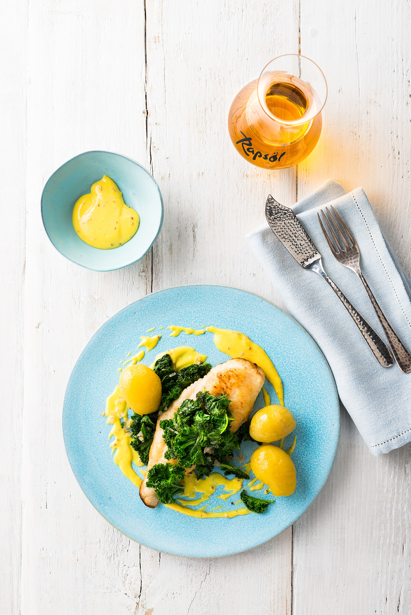 Rezeptidee November 2025: Schollenfilets mit gebratenem Grünkohl und Rapsöl- Senfmayonnaise
