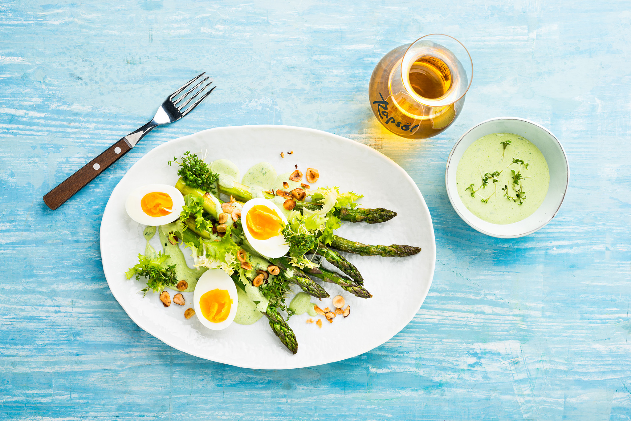 Rezeptidee März 2024: Grünspargel mit Kräutersauce und wachsweichen Eiern