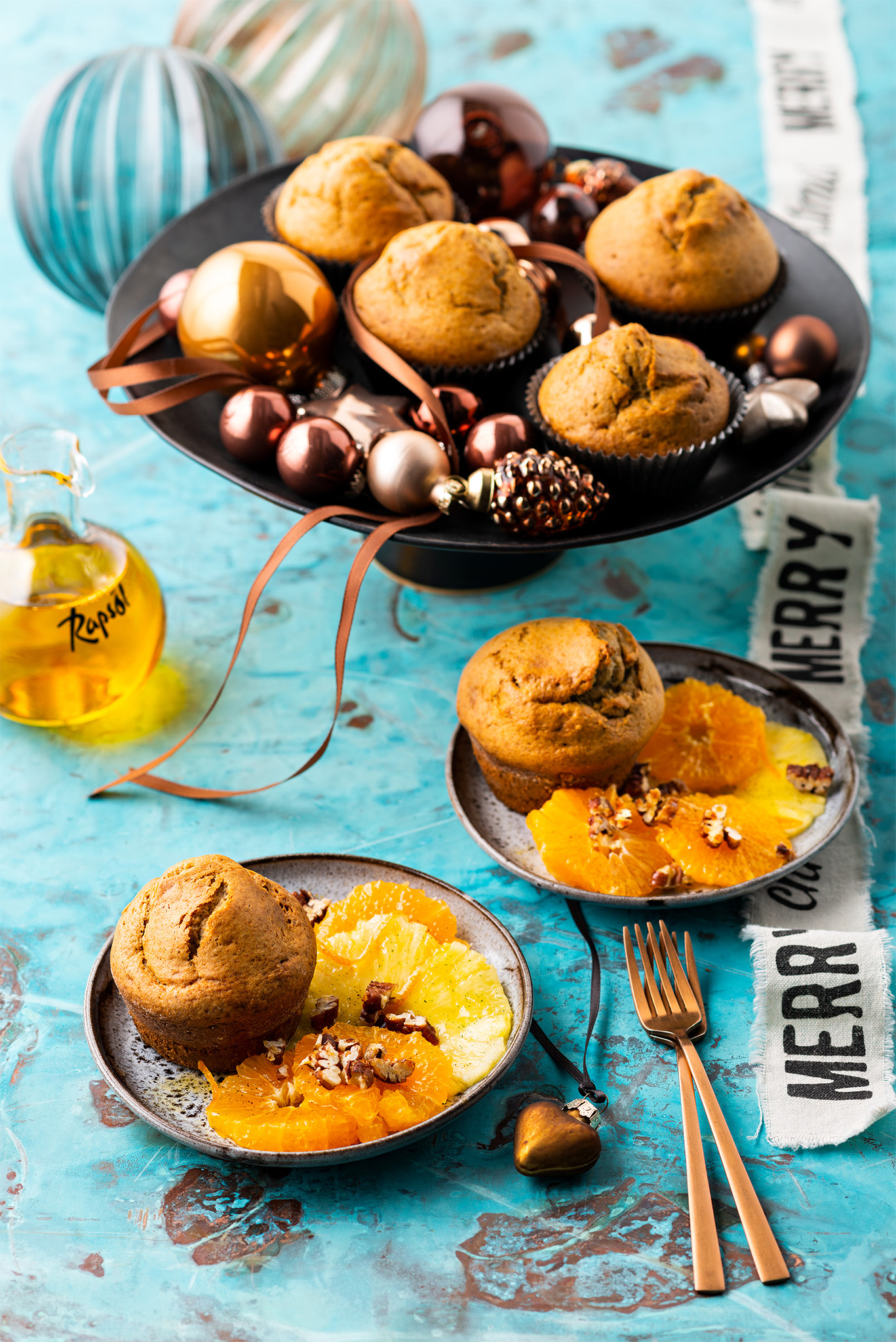 Rezeptidee Dezember 2025: Weihnachtsmuffins mit Vanille-Früchten und Knuspernüssen