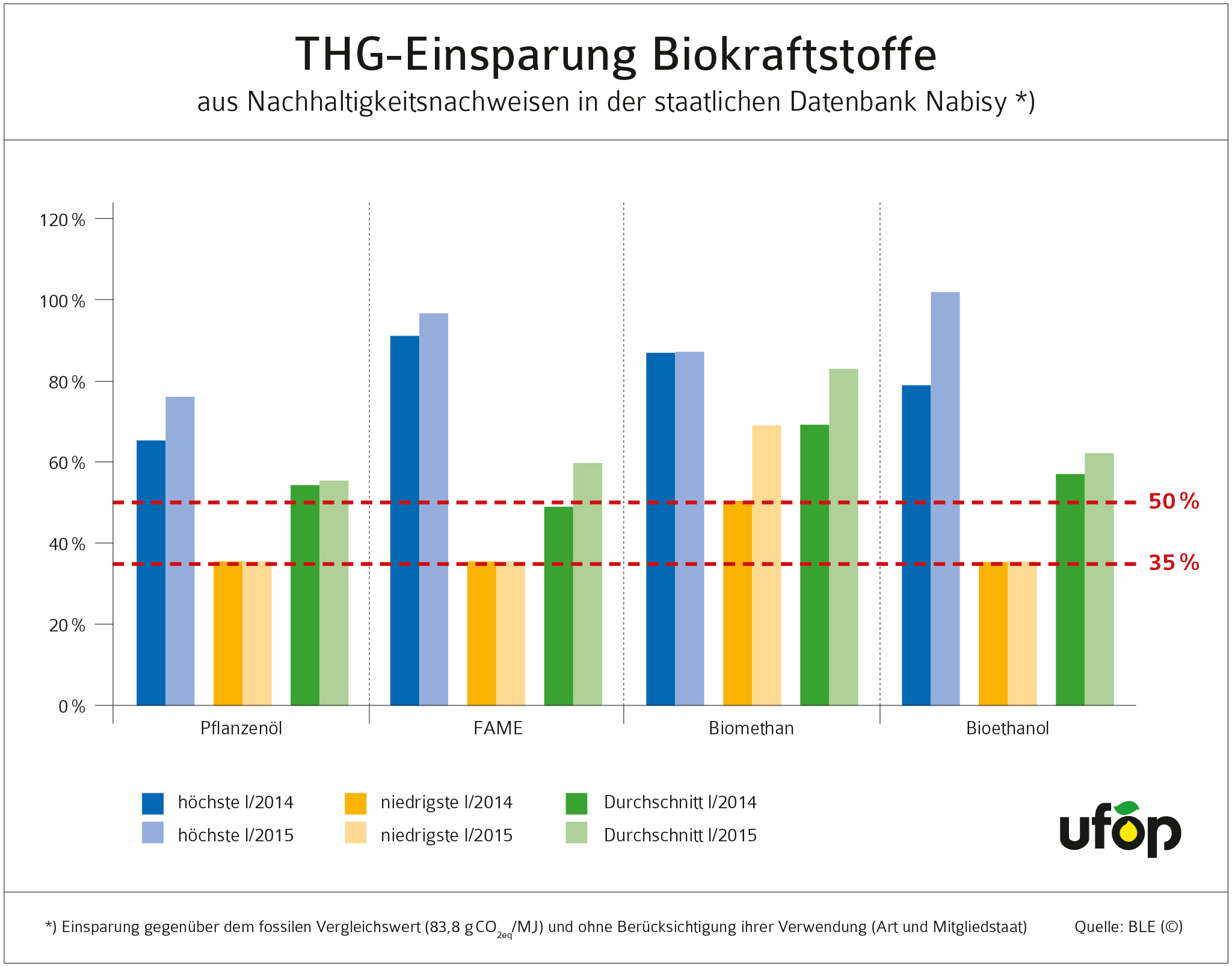 Im Schnitt beträgt die Treibhausgaseinsparung bereits mehr als 60 Prozent. Folglich mindert sich zur Erfüllung der Treibhausgasminderungspflicht der Biokraftstoff- und dadurch auch der Biomasserohstoffbedarf. Dies ist im doppelten Sinn ein Effizienzgewinn, der in dieser Form nur bei Biokraftstoffen zu finden ist. Biokraftstoffe aus Ölsaaten oder Getreide gehen damit voran, sich neuen Wettbewerbsbedingungen, aber auch umfangreichen Zertifizierungsanforderungen stellen zu müssen. Dies ist im Vergleich zur stofflichen Nutzung nachwachsender Rohstoffe ein herausragendes Alleinstellungsmerkmal in der Bioökonomie, so die UFOP.
